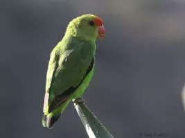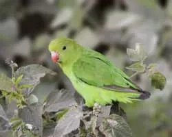 The black-winged lovebird also known as Abyssinian lovebird is a mainly green bird of the parrot family. At about 16. 5 cm long, it is the largest of the lovebird genus, a group of small parrots. The adult male is easily identified by its red forehead, and the adult female by its all green head.