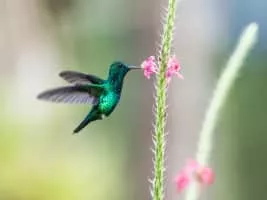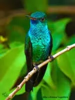 The blue-chinned sapphire is a hummingbird that breeds from Colombia south and east to the Guianas, Trinidad, Peru, and Brazil. There have been occasional records from Tobago.