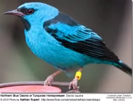 The blue dacnis or turquoise honeycreeper is a small passerine bird. This member of the tanager family is found from Nicaragua to Panama, on Trinidad, and in South America south to Bolivia and northern Argentina. It is widespread and often common, especially in parts of its South American range.