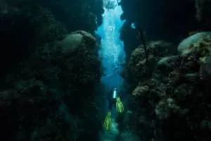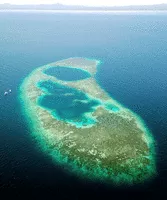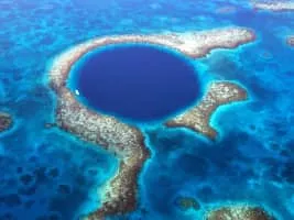 A blue hole is a large marine cavern or sinkhole, which is open to the surface and has developed in a bank or island composed of a carbonate bedrock. Blue holes typically contain tidally influenced water of fresh, marine, or mixed chemistry.