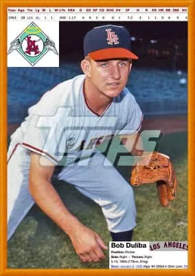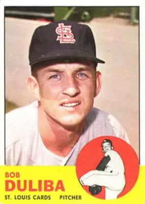 Robert John Duliba is a former Major League Baseball relief pitcher. The 5 ft 10 in, 185 lb right-hander played for the St. Louis Cardinals, Los Angeles Angels, Boston Red Sox and Kansas City Athletics. Duliba made his major league debut on August 11, 1959, against the San Francisco Giants at Busch Stadium.