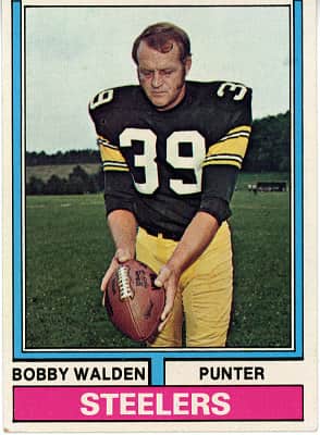 Robert Earl Walden was an American professional football player who was a punter in the National Football League and Canadian Football League. Walden played for 17 seasons, 14 of which were played in the NFL from 1964 to 1977. Previously, Walden had played three years in the CFL from 1961-1963.