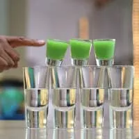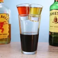 A bomb shot, depth charge, or drop shot, is a mixed drink that is made by mixing two drinks. A drink in a small glass is dropped into a larger glass holding a different drink. The resulting cocktail is typically consumed as quickly as possible.