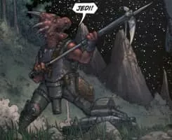 Bomo Greenbark was a male Nosaurian native from New Plympto, who served as a scout to the Separatists and fought against the Galactic Republic during the Clone Wars. Like all Nosaurians, Greenbark was capable of producing a phosphorent flash from his mouth.