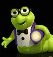 The Bookworm is a minor character in Toy Story 3. He is a green worm with glasses and a sturdy flashlight. He is a genius who loves reading books.