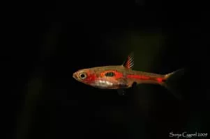Boraras merah is a species of ray-finned fish in the genus Boraras. It is between 15 and 20mm long with a red base colour to the body.