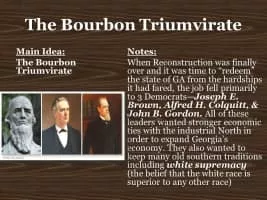 The Bourbon Triumvirate refers to three powerful and influential Georgia politicians, all members of the Democratic Party, in the post-Reconstruction Era: Joseph E. Brown, Alfred H. Colquitt, and John Brown Gordon.