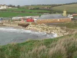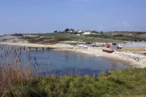 Bowleaze Cove is a small sand and shingle beach, near the village of Preston, just to the northeast of Weymouth, Dorset, England. The cove is on the Jurassic Coast and is known for its geology. Just to the west is Furzy Cliff. The beach is made up of mainly shingle and shell with some sandy areas.