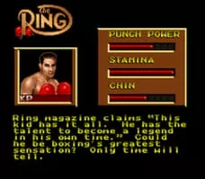 Boxing Legends of the Ring is a boxing video game for the Mega Drive/Genesis and Super NES consoles. The boxers are represented by 2D sprites seen from over the shoulder of one of the fighters. The title of the game refers to the famous boxing magazine, The Ring, which the game is licensed to associate itself with.
