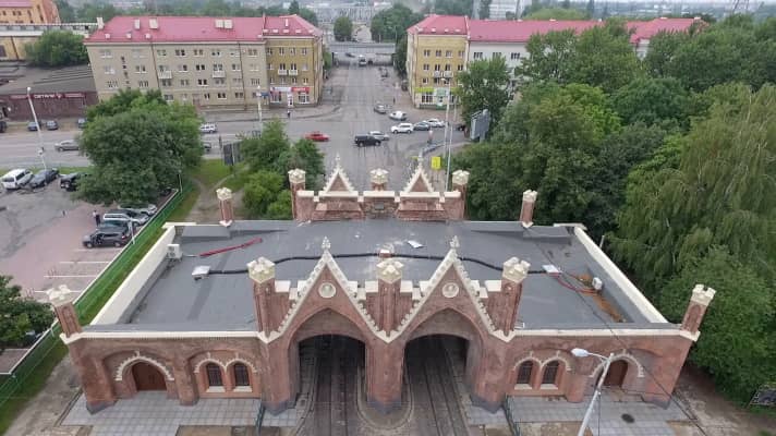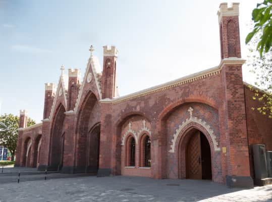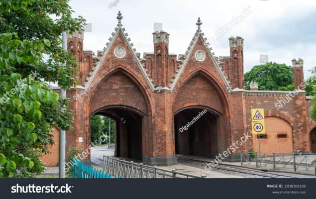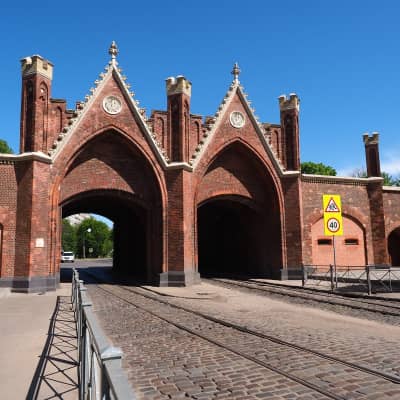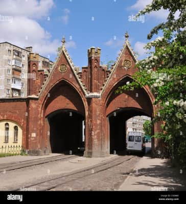 The Brandenburg Gate is one of seven surviving city gates in Kaliningrad, the former German city of Königsberg. The gate is located on Bagration Street and is the only gate of Kaliningrad still in use for the intended purpose.