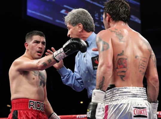 Brandon Lee Ríos is an American professional boxer. He held the WBA lightweight title in 2011 and has challenged once for the WBO welterweight title in 2015. Nicknamed "Bam Bam", Ríos was known for his aggressive pressure fighting style, formidable punching power, and exceptionally durable chin during his prime.