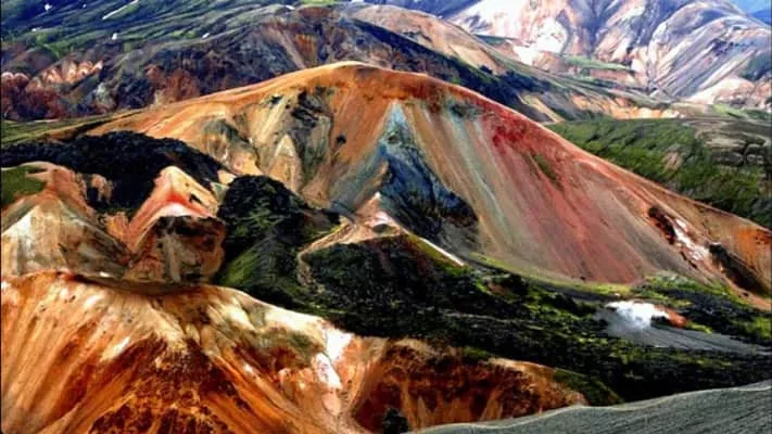 The Brennisteinsalda is a volcano in the south of Iceland. Its height is about 855 m. It is situated near Landmannalaugar and not far from Hekla. The name means in English: sulphur wave. It comes from the sulphur spots which have coloured its sides.