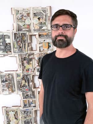 Brian Dettmer is an American contemporary artist. He is noted for his alteration of preexisting media—such as old books, maps, record albums, and cassette tapes—to create new, transformed works of visual fine art.