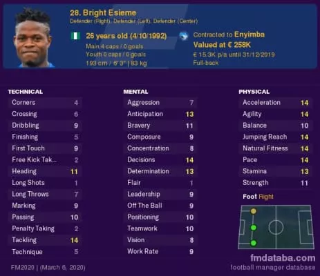 Bright Esieme is a Nigerian professional footballer who plays as a defender for Enyimba.