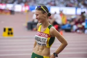 Brigita Virbalytė-Dimšienė is a female professional race walker who competes internationally for Lithuania. She participated at the 2009 World Championships in Athletics and reached 24th place. She is also a Lithuanian National Radio and Television sports journalist.