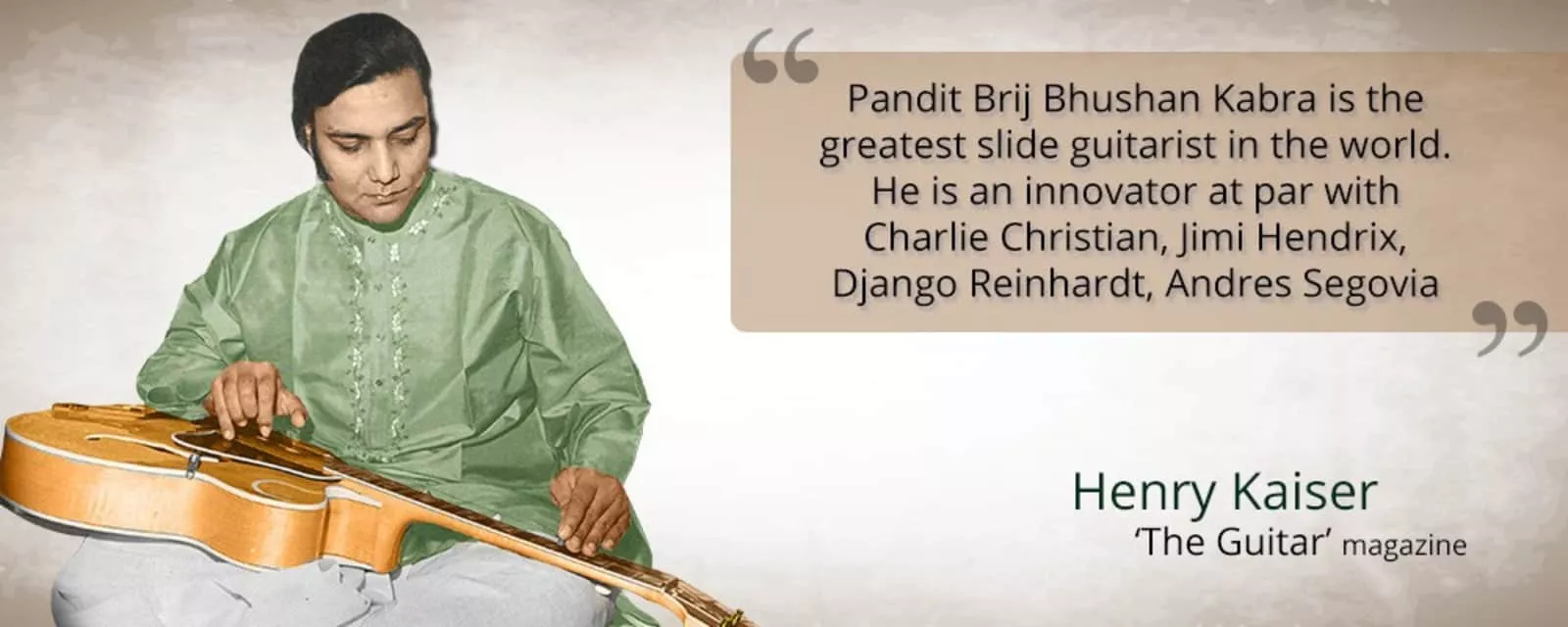 Brij Bhushan Kabra was an Indian musician who popularized the guitar as an instrument in Indian classical music. Kabra was born in 1937 to Goverdhanlal Kabra in Jodhpur where he spent his youth.