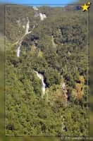 Browne Falls is a waterfall above Doubtful Sound, which is located in Fiordland National Park, New Zealand. In a temperate rain forest, the falls cascade down to the fiord near Hall Arm. Heights of 619 metres and 836 metres have been given for the falls.