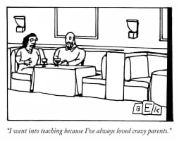 Bruce Eric Kaplan, known as BEK, is an American cartoonist whose single-panel cartoons frequently appear in The New Yorker. His cartoons are known for their signature simple style and often dark humor. Kaplan is also a screenwriter and has worked on Seinfeld and on Six Feet Under.