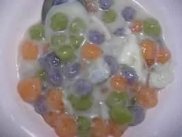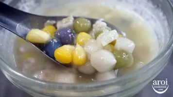 Bua loi or bua loy is a Thai dessert. It consists of rice flour rolled into small balls, and cooked in coconut milk and sugar.