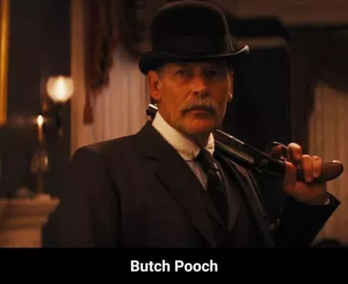 Butch Pooch is a supporting antagonist in Django Unchained. He is Calvin Candie's right hand man and personal bodyguard. He was portrayed by James Remar, who also played Ajax in The Warriors, Albert Ganz in 48 Hrs, Beauty Smith in White Fang, Vilgax in Ben 10 and Quill in The Phantom.