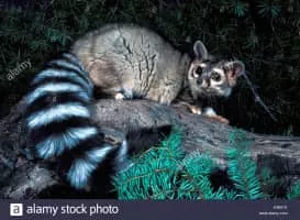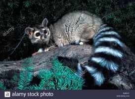 The cacomistle is a nocturnal, arboreal and omnivorous member of the carnivoran family Procyonidae. Its preferred habitats are wet, tropical, evergreen woodlands and mountain forests, though seasonally it will venture into drier deciduous forests. Nowhere in its range is B. sumichrasti common.
