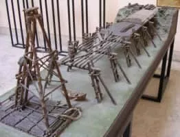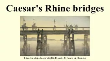 Caesar's Bridge across the Rhine, the first two bridges to cross the Rhine River on record, were built by Julius Caesar and his legionaries during the Gallic War in 55 BC and 53 BC. Strategically successful, they are also considered masterpieces of military engineering.