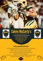 Calvin McCarty is a professional Canadian football running back for the Calgary Stampeders of the Canadian Football League. He played as a tailback until 2014, when he became the starting fullback for the Edmonton Eskimos.
