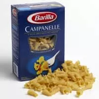 Campanelle, is a type of pasta which is shaped like a cone with a ruffled edge, or a bell-like flower. It is also sometimes referred to as gigli. It is intended to be served with a thick sauce, or in a casserole. In Italian, campanelle can also refer to "handbells. "