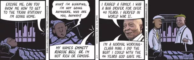 Candorville is a syndicated newspaper comic strip written and illustrated by Darrin Bell. Launched in September 2003 by The Washington Post Writers Group, Candorville features young black and Latino characters living in the inner city.