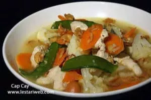 Cap cai, sometimes spelled cap cay, is the Hokkien-derived term for a popular Chinese Indonesian stir-fried vegetable dish that originates from Fujian cuisine.