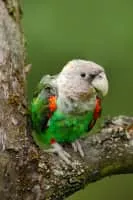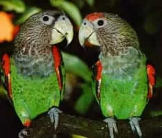 The Cape parrot or Levaillant's parrot is a large, temperate forest dwelling parrot of the genus Poicephalus endemic to South Africa. It was formerly grouped as a subspecies along with the savanna-dwelling brown-necked parrot and grey-headed parrot, but is now considered a distinct species.