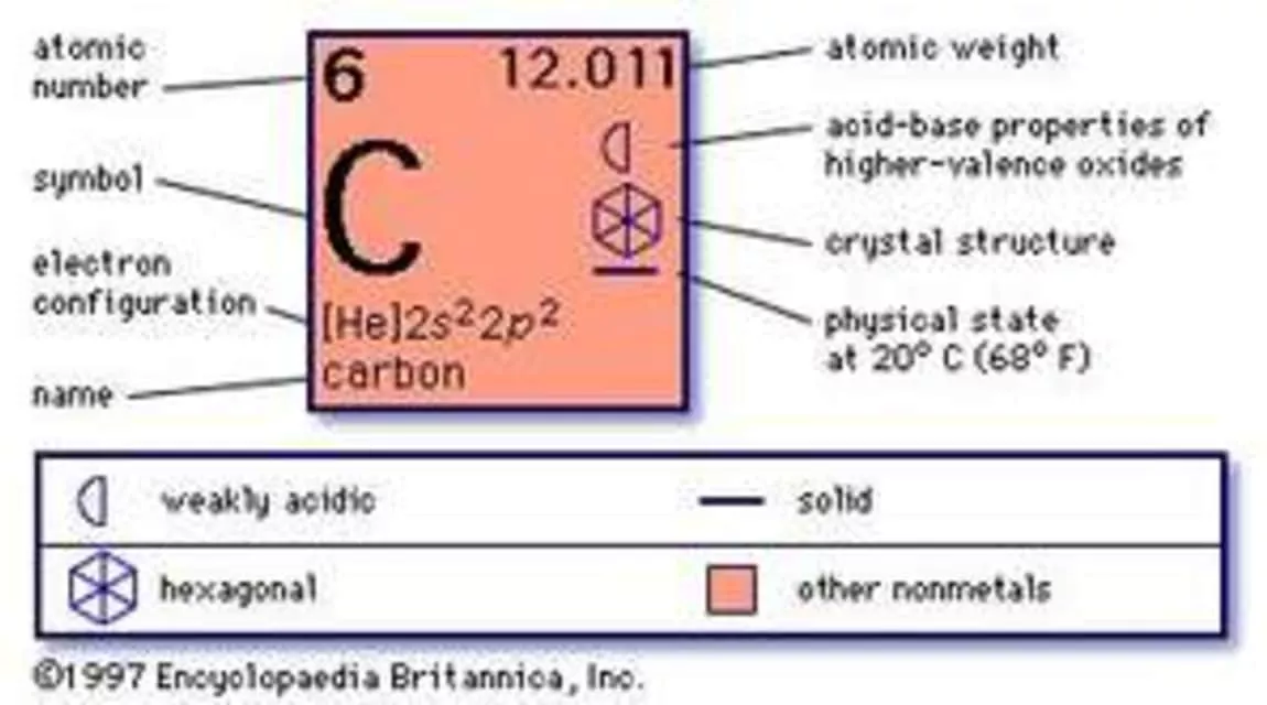 Carbon is a chemical element with symbol C and atomic number 6. It is nonmetallic and tetravalent—making four electrons available to form covalent chemical bonds. It belongs to group 14 of the periodic table.