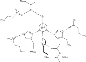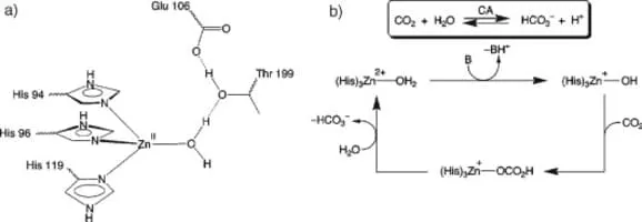 The carbonic anhydrases form a family of enzymes that catalyze the interconversion between carbon dioxide and water and the dissociated ions of carbonic acid. The active site of most carbonic anhydrases contains a zinc ion. They are therefore classified as metalloenzymes.