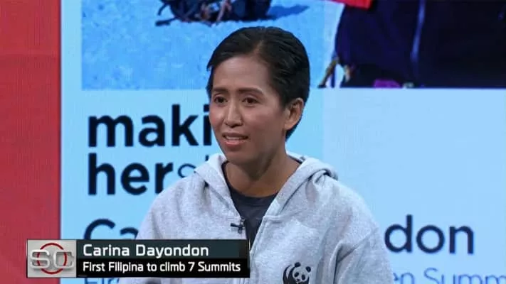 Carina Dayondon is a Filipina mountaineer, adventurer, and Philippine Coast Guard officer who was the first Filipina to reach the Seven Summits, the seven tallest mountains in every continent in the world, and the second Filipina to reach the summit of Mount Everest.