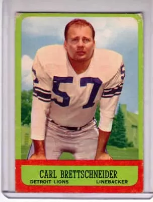 Carl Brettschneider was an All-Pro linebacker in the NFL. He played for the Chicago Cardinals and Detroit Lions.