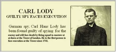 Carl Hans Lody, alias Charles A. Inglis, was a reserve officer of the Imperial German Navy who spied in the United Kingdom in the first few months of the First World War. He grew up in Nordhausen in central Germany and was orphaned at an early age.