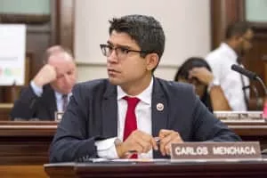 Carlos Menchaca is an American politician who served as a member of the New York City Council for the 38th district. He is a Democrat. His district included the Brooklyn neighborhoods of Sunset Park, Red Hook, Greenwood Heights, and portions of Borough Park, Dyker Heights, and Windsor Terrace.