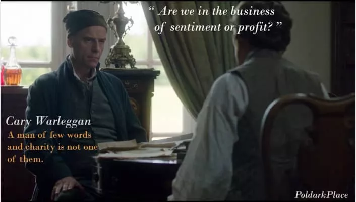 Cary Warleggan (1740 - 1820) was the uncle of George Warleggan and a successful banker who persuaded George toward increasingly callous business decisions.