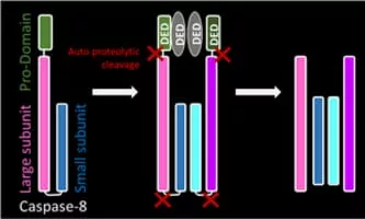Caspases are a family of protease enzymes playing essential roles in programmed cell death and inflammation. They are named caspases due to their specific cysteine protease activity – a cysteine in its active site nucleophilically attacks and cleaves a target protein only after an aspartic acid residue.