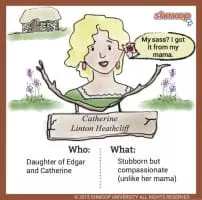 Catherine Linton is a character in Emily Brontë's 1847 novel Wuthering Heights. She is the daughter of Edgar Linton and Catherine Earnshaw. Despite Heathcliff's attempts at exacting revenge on her for the indiscretions of her family, she eventually marries her true love, Hareton Earnshaw.
