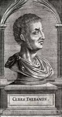 Cebes of Thebes was an Ancient Greek philosopher from Thebes remembered as a disciple of Socrates. One work, known as the Pinax or Tabula, attributed to Cebes still survives, but it is believed to be a composition by a pseudonymous author of the 1st or 2nd century CE.