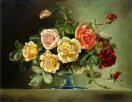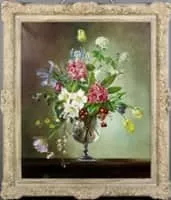 Cecil Kennedy, was a British artist best known for his highly detailed oil paintings of flowers. He was also wont to include a ladybug or a bumblebee in his pictures. Cecil Kennedy's obituary can be found in The Independent, and cuded.