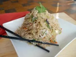Cellophane noodles, or Fensi, sometimes called glass noodles, are a type of transparent noodle made from starch and water. They are generally sold in dried form, soaked to reconstitute, then used in soups, stir fried dishes, or spring rolls.