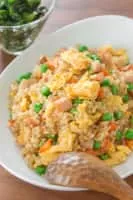 Chahan is a Japanese fried rice dish prepared with rice as a primary ingredient and a myriad of additional ingredients and seasonings. The dish is typically fried, and can be cooked in a wok. Chahan may have originated in the 1860s from Chinese immigrants arriving at the port of Kobe.
