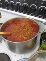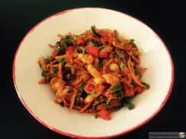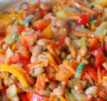 Chakalaka is a South African vegetable relish, usually spicy, that is traditionally served with bread, pap, samp, stews, or curries.