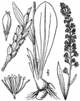 Chamaelirium is a genus of flowering plants containing the single species Chamaelirium luteum, commonly known as blazing-star, devil's bit, false unicorn, fairy wand, and helonias. It is a perennial herb native to the eastern United States.