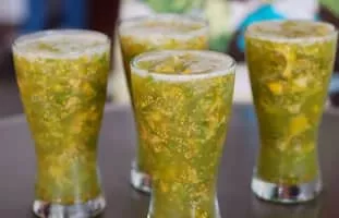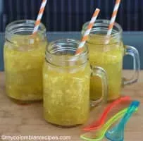 Champús is a drink popular in Peru, Ecuador and southwest Colombia, made with maize, fruits such as lulo, pineapple, quince or guanábana, sweetened with panela and seasoned with cinnamon, cloves and orange tree leaves. In Peru, it is drunk warm, and apple, guanábana and quince are used instead of lulo.