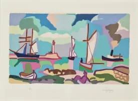 (French, 1898–1988) Charles Lapicque was a French painter known for his brightly colored depictions of landscapes and figures. Employing fragmented pictorial space, patches of color, and cursory outlines, Lapicque's style most closely resembled that of Raoul Dufy.