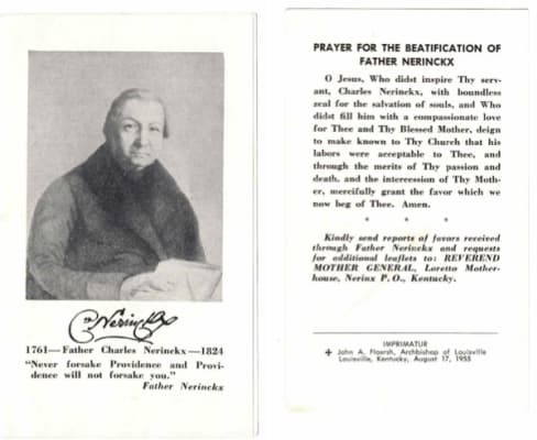 Charles Nerinckx was a Catholic missionary priest who migrated from Belgium to work in Kentucky. He founded fourteen churches and the Sisters of Loretto. Nerinckx became known as "the Apostle of Kentucky."