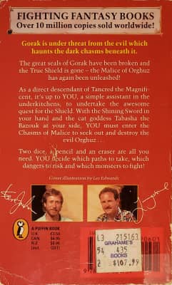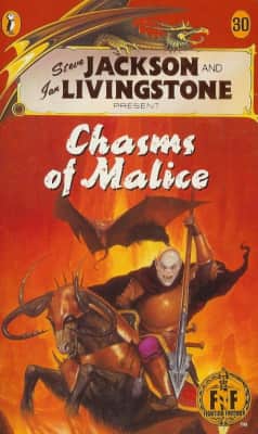 Chasms of Malice is a single-player role-playing gamebook written by Luke Sharp, illustrated by Russ Nicholson and originally published in 1987 by Puffin Books. It forms part of Steve Jackson and Ian Livingstone's Fighting Fantasy series.